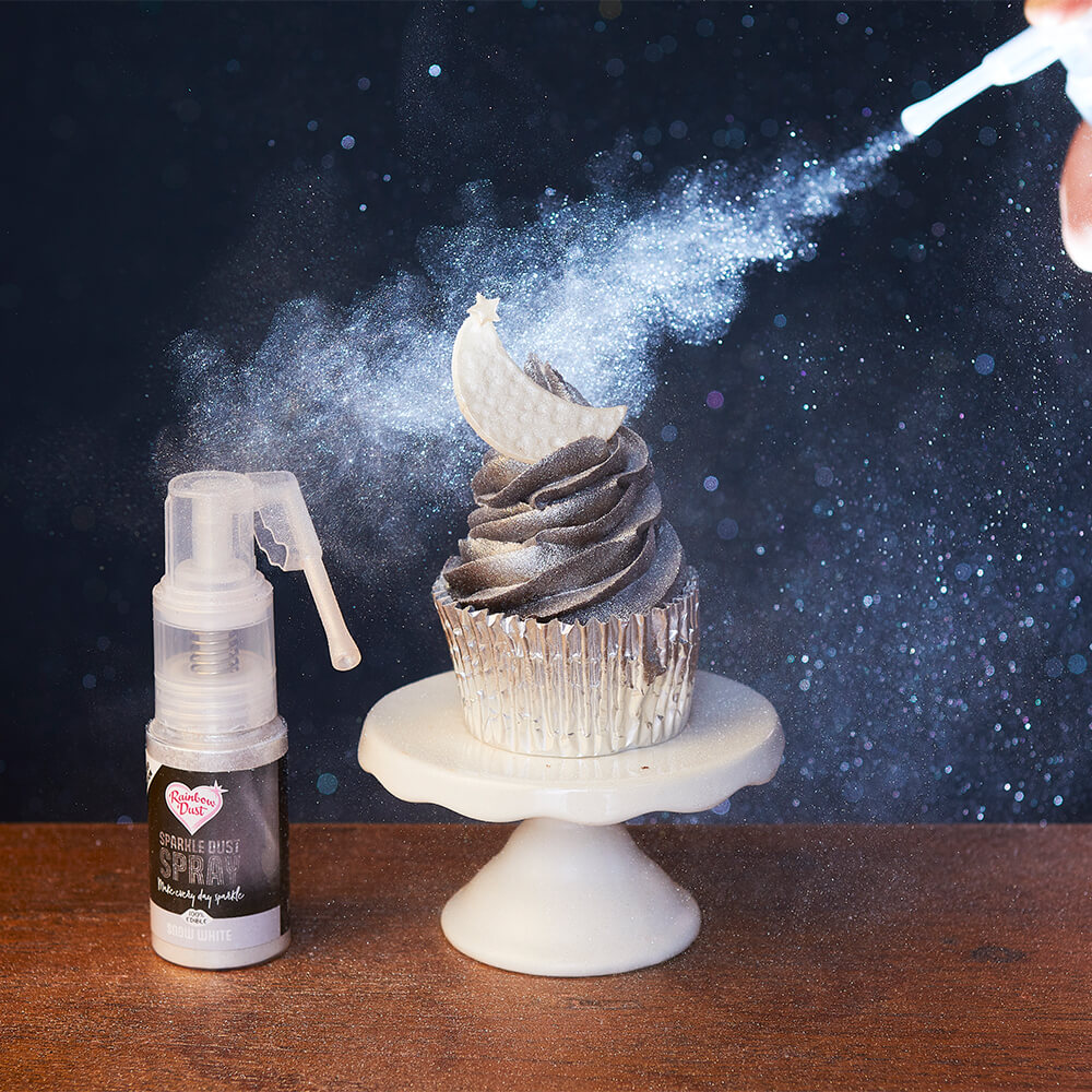 Give all your creations a fairytale makeover with magical Sparkle Dust. The Sparkle Dust pump spray bottle features a unique wand that can be adjusted to the direction you need, making decorating simple. Hold the wand close for concentrated coverage or further away for a light dusting.